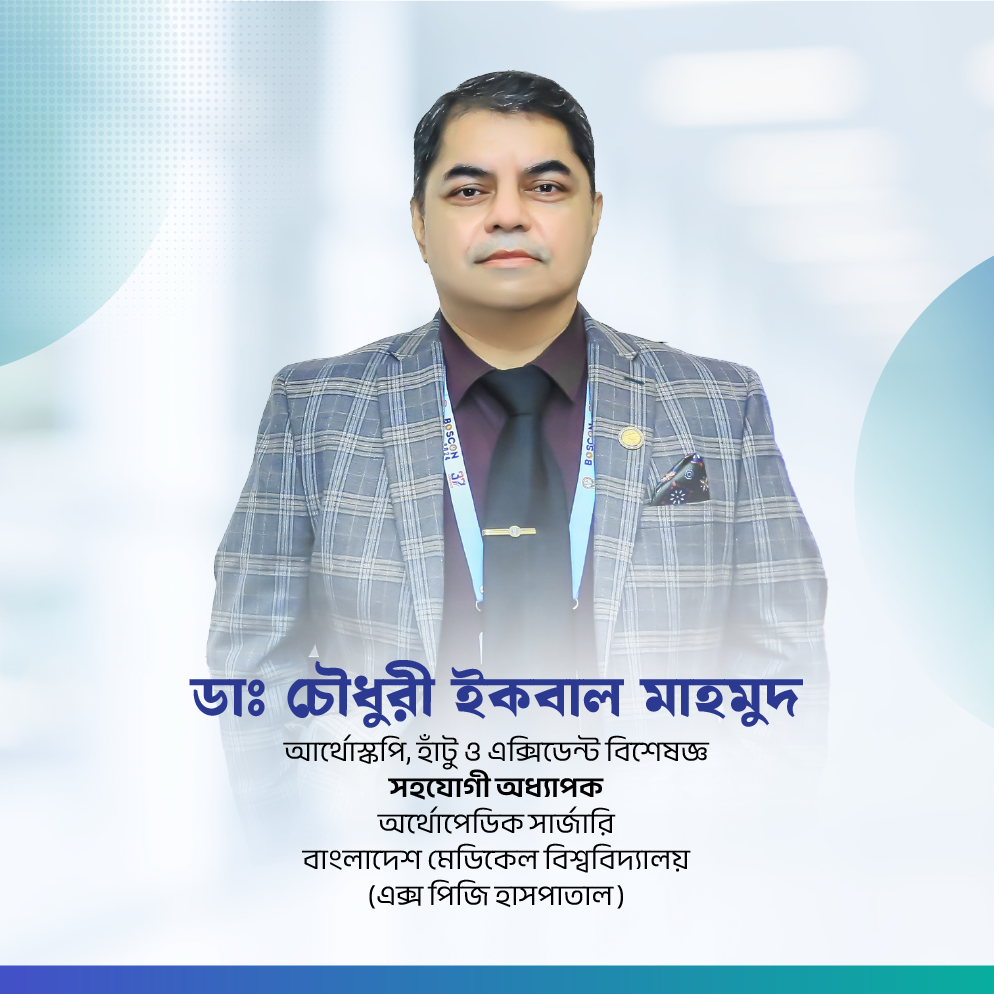 Dr. Chowdhury Iqbal Mahmud has been working as an Associate Professor of Orthopaedic Surgery in Bangladesh Medical University (Ex-PG Hospital). He published many articles both in international and national indexed journals. He is a Google scholar and reviewer of PubMed indexed journal. He is also involved in teaching and training of MS (Ortho) and Diploma (Ortho) students of Bangladesh Medical University (Ex-PG Hospital) . He is a listed examiner of MS and Diploma students and regularly supervise their thesis.
